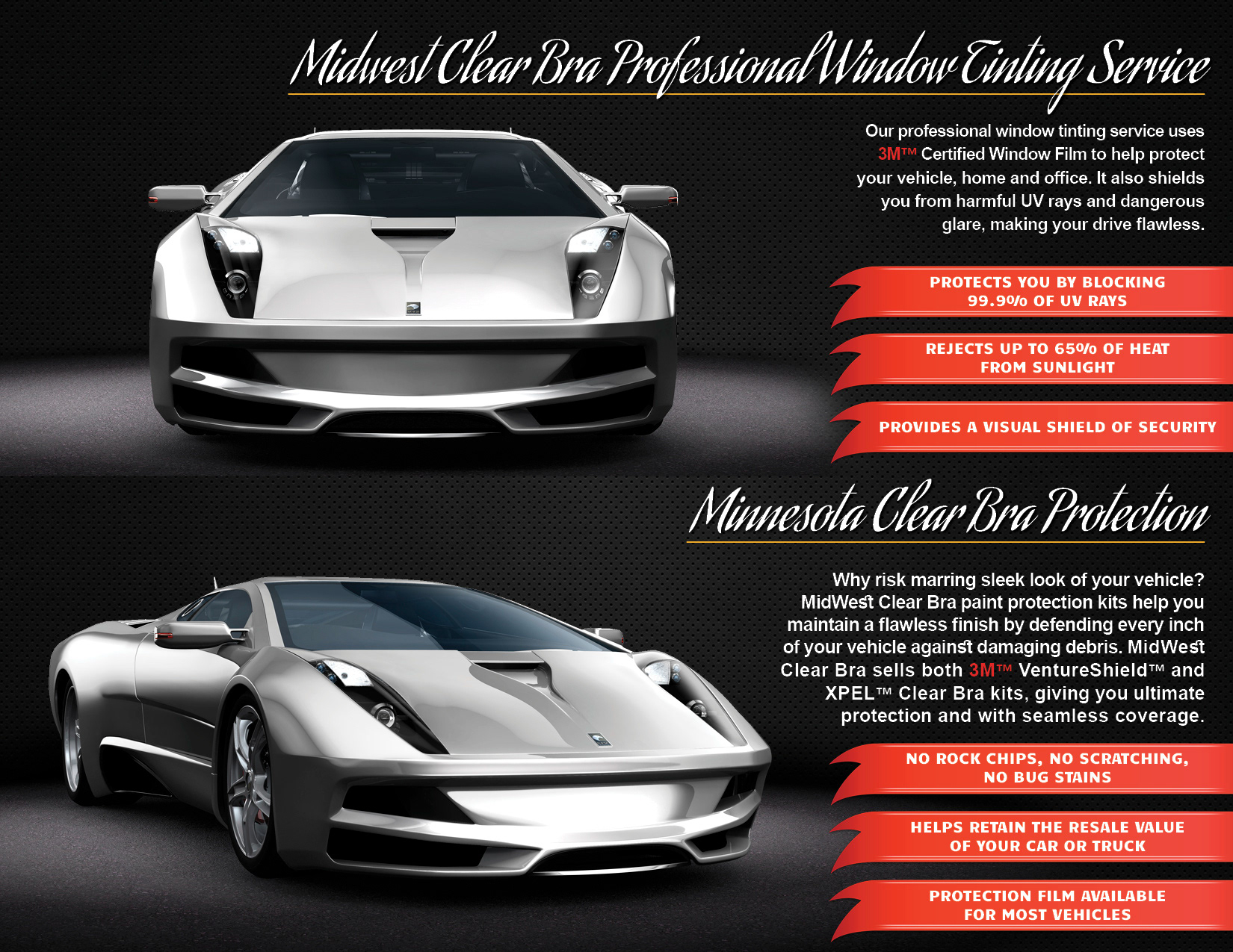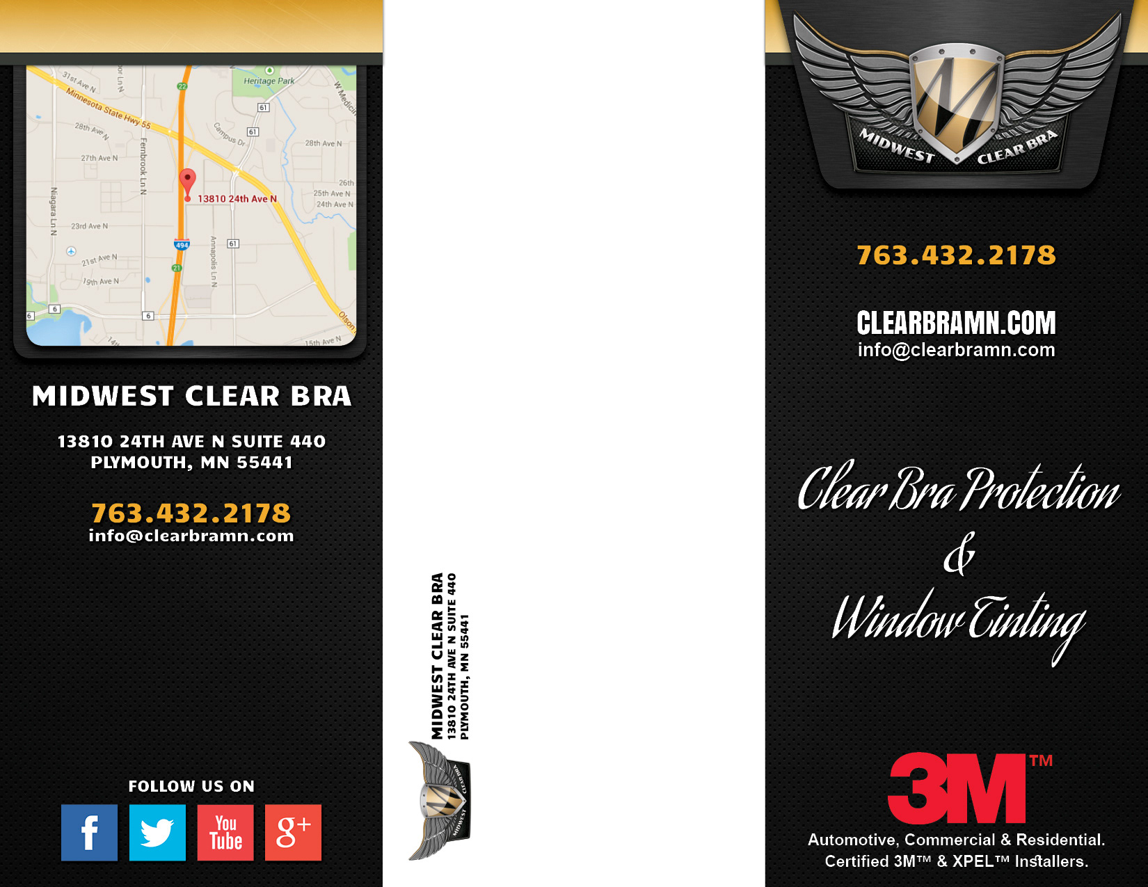 B2C marketing brochure designed to show what Midwest Clear Bra offers potential clients. The client desired the brochure to match the design qualities of their website.